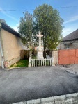 Az ut masik oldalan a katolikus templommal szemben talalhato a kereszt, kis feher keritessel korbekeritve.