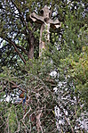 A kereszt kutyákkal gazdagon ellátott magántelken áll, bemenni nem tudtam, így feliratot sem láttam.