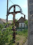 Gondozott, festett bádog Krisztus, felirat, évszám nélkül.