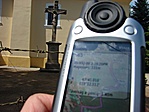 A koordináta a kerítésnél mérve, mert a templomkertbe nem lehetett bejutni.