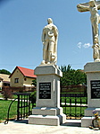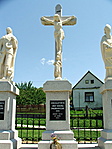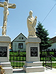 A kereszt két oldalán lévő szobroknál a felirat: