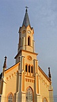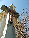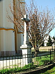 Faddon az impozáns méretű templom kertjében áll a kereszt.