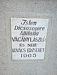 Isten dicsőségére állítatta Vágány László és neje Kovács Erzsébet 1965