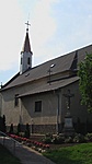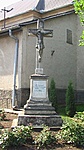 A templom mellett áll a kereszt gondozott környezet veszi körül.