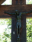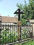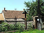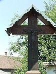 Egy gerenda alapon, fakereszt, egy kis tetővel