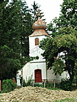 A kis katolikus templom előtt.