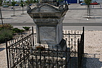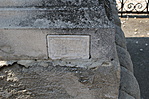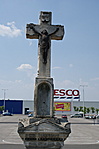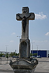 A kereszt feliratának java része olvashatatlan. Az állapota is hagy maga után kívánni valókat. Mintha az alsó szoborfülkéből valami hiányozna.