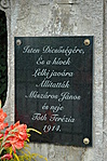 A felirat most egy (mű?)márvány táblán olvasható, de alatta látszik az eredeti vésett felirat is.