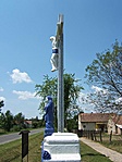 Szépen kifestve, azonban a Krisztus-szobor karjai hiányoznak, maga a kereszt pedig erősen dől hátrafelé.