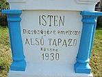 ISTEN Dicsöségére emeltette ALSÓ TAPAZD Község 1930