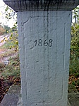 A piros turistajellel jelölt út mellett, az elágazás sarkában áll a kereszt. Felirata a fehérre meszelt talapzaton: "1868", más felirat nem látszik.
