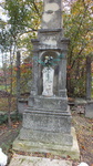 Fölső szobra hiányzik, az alsó szobor feje letörött, felirata kopott.