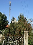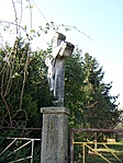 A kereszt egy lakóház udvarán van, felirat is látható a talapzatán, de a növényzet takarása miatt mégsem olvasható.