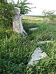Az alapja hosszában kettéhasadt a kereszt maga ledőlt és több darabra tört.