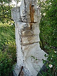 A helyszínen megtaláltam az alap állva maradt részét, a másik darabját, valamint a kereszt vízszintes részét a korpusz felsőtest és karok, valamint a nyak. (a fejet nem láttam).
