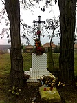 A kereszt négy fa között, körbekerítve áll, szöveg nem látható rajta (valószínűleg a 2009-es felújításkor tűnt el, ha volt rajta egyáltalán).