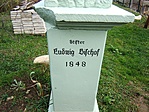 Szépen kifestve, de felső párkányzatának egyik sarka letörött. Béres István (ezekszerint régebbi) leírása szerint felirata: ,,Stieftet Ludwig Bischof 1848 1969 Konstanzer család''.