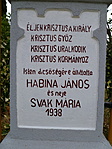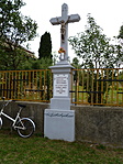 A felirat nehezen olvasható, fenti megfejtése bizonytalan. A kereszt egy magánház kerítésében áll.