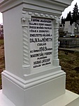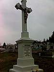 A kereszt a temetőben áll, sír mögött.