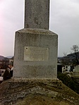 A kereszt rossz állapotban van, az előoldalon vélhetően egykor létező felirat ma már teljesen eltűnt, csak a hátul, egyértelműen utólag belevésett szöveg olvasható. A kereszt alatt valószínűleg kripta van.