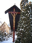 Festett fa kereszt, fából faragott korpusszal. Nagyon újnak néz ki, de évszámot nem találtam rajta.