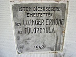 [eleje:] ISTEN DICSÖSÉGÉRE EMELTETTÉK özv UZINGER ERNŐNÉ és FÜLÖP GYULA 1948