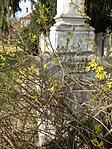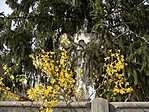 Elképzelhető, hogy van rajta felirat vagy évszám, de egy udvaron áll, magas betonkerítés mögött.