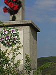 A templomkertbe nem tudtam bejutni. A felirat előtt lévő bokor olvashatatlanná tette.