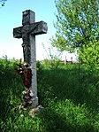Lapos talapzaton álló kereszt, éppen Veszprém megyében, de annak igencsak a határán.