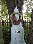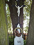 A kereszt a Pere-Abaújszántó közút mellett van, három hatalmas hársfa között, korának megfelelően eléggé romos állapotú, de gondozzák, mert friss vágott virágok álltak előtte.