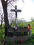 A kereszt a Kossuth utca hajtűkanyarjánál van, fa tövében (mellette faoszlop 5-ös számmal és kék Z turistajelzéssel).
