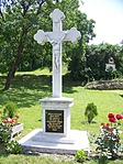 A kereszt a templom mellett áll, kisebb park közepén.