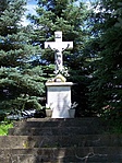 A kereszthez lépcső vezet. Viszonylag jó állapotú, műmárványnak tűnő anyagból készült, a betűk festése már majdnem teljesen lekopott.