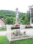A kereszt Arkán, a Hunyadi utca kiöblösödésében áll, a templom közelében. Viszonylag jó állapotú, bekerített, gondozott.