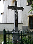 A kereszt a katolikust templom előtt áll, nagyon jó állapotú, felújított. Felirata valószínűleg már csak egy mostanában rákerült tábla, az eredeti felirat és az állítás éve ismeretlen, ahogy a tábla felkerülésének és a felújításnak az ideje is.
