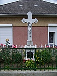A kereszt a sörözőtől nem messze, egy magánház kertjében áll, feliratából nem teljesen egyértelmű, hogy ki is állíttatta. (Talán egy felújítás dátuma lehet az 1963-as év?!)