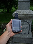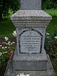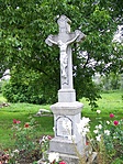 A kereszt jó állapotú, szabadon áll, rózsák és egyéb évelő növények vannak körülötte.