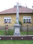 A kereszt egy magánház kertjében áll, gondozott, jó állapotú. Maga a keresztfa szokatlanul erősen díszített, vaskos.