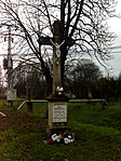 A kereszt négy fa között, körbekerítve áll, szöveg nem látható rajta (valószínűleg a 2009-es felújításkor tűnt el, ha volt rajta egyáltalán).