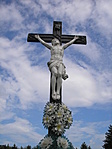 Gondozott. Az "INRI" táblácska sarkain az alfa és az omega lóg.
