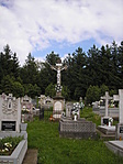 Az egykori korpusz rögzítésének helye még látszik. A temetőben 1800-as évekbeli sírok.