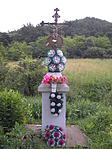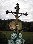 D. J. K. a keresztfához megyek mert máshol nem lelhetek nyugodalmat lelkemnek Isten dicsőségére állíttatta VERES ISTVÁN és neje Lengyel Erzsébet 1923.