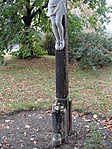Lépcsős beton talapzaton elhelyzkedő festett korpusz. Felirat nélkül.