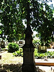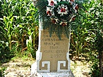 A temető régi részében áll, cirill betűs sírkövek között (ami elég szokatlan egy katolikus temetőben...), teljesen törött, darabjai ott vannak mellette.