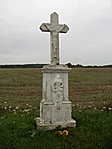 Szép, fémesnek tetsző kereszt. A felirat nehezen olvasható.
