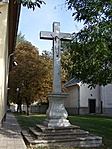 Nagyon hasonlít a templom mögötti temetőben álló keresztre. Valószínűleg ugyanaz a művész ugyanakkor készítette.