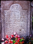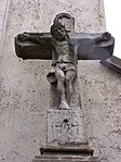 A műemléki védettségű kőfeszület feliratát igyekeztem ékezet-helyesen bemásolni.