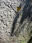 Lemeszelt felirat, nem tudom kibetűzni, németül kell lennie, mert az első szó: "zur" Zsörk elhagyott falu, ezen az úton lehet(ett) oda menni.