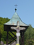 A kereszt köré ültetett tuják már túlságosan magasra nőttek.