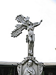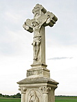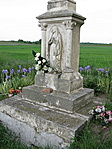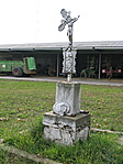 Vasbeton kereszt öntvény korpusszal. 20.szd-i lehet, felirat, évszám nincs. Gondozott, friss virággal.